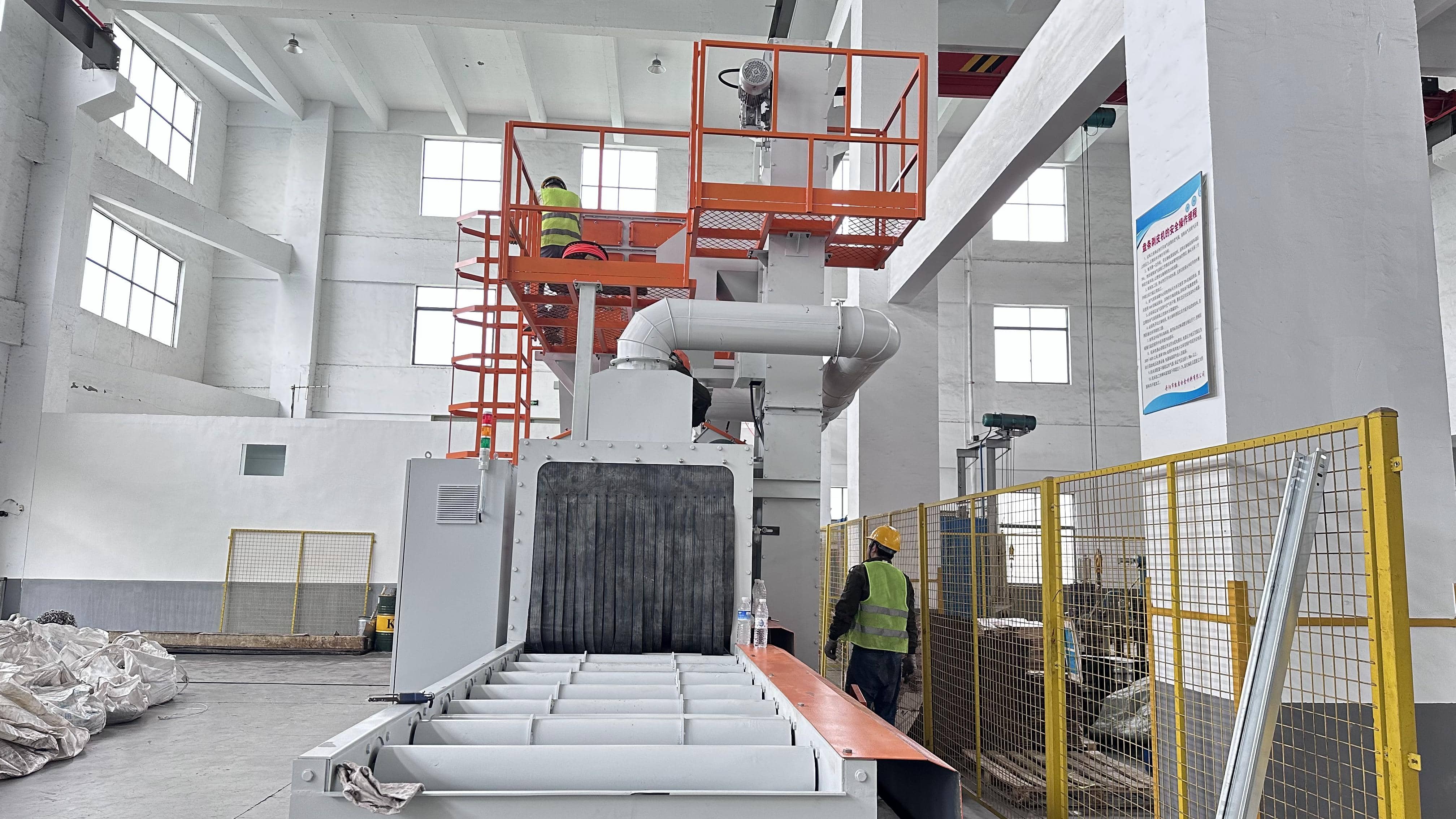 设备描述:抛丸机是指利用抛丸器抛出的高速弹丸清理或强化铸件表面的铸造设备。