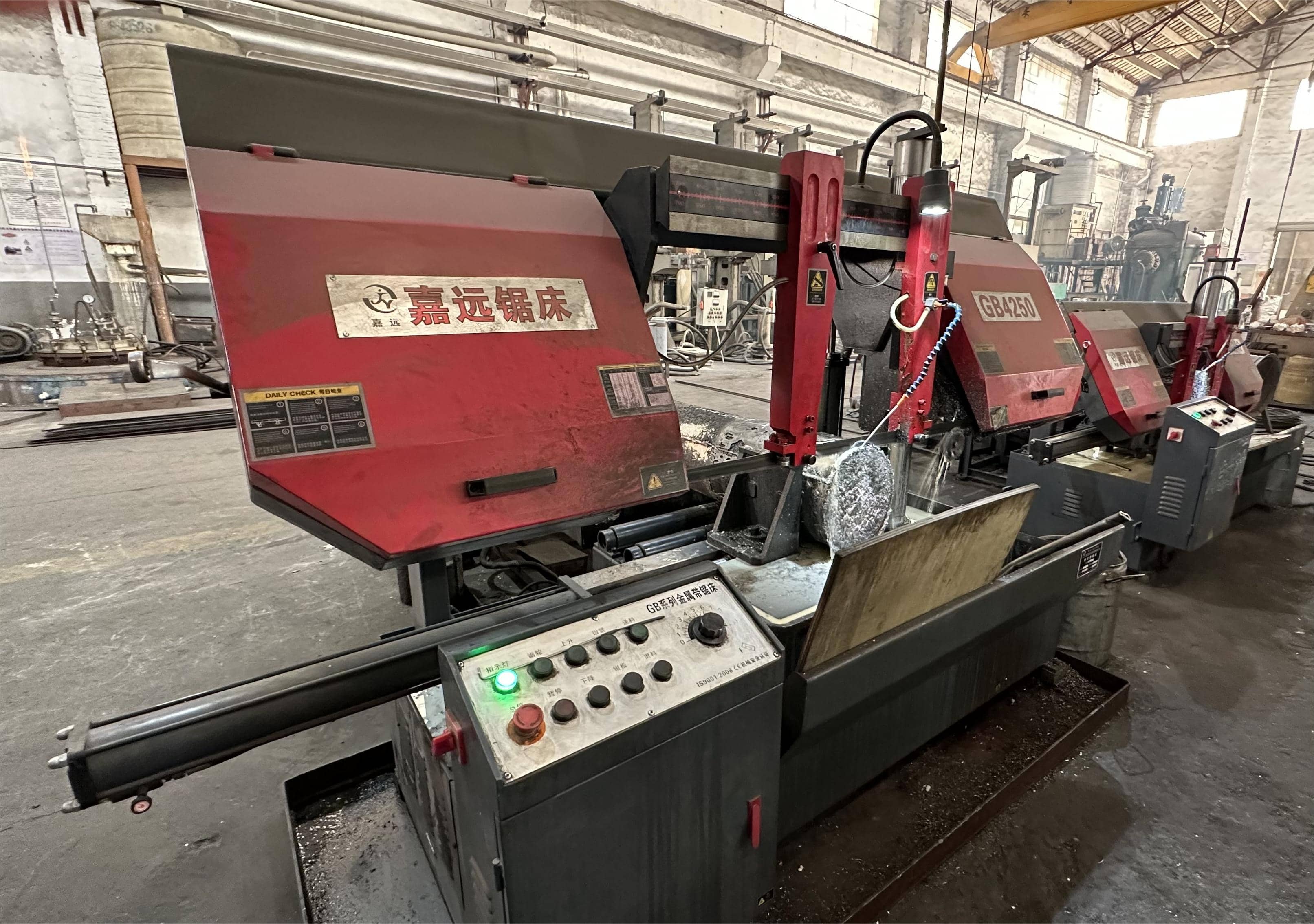 设备描述:带锯床为环形锯带张紧在两个锯轮上,并由锯轮驱动锯带进行切割。